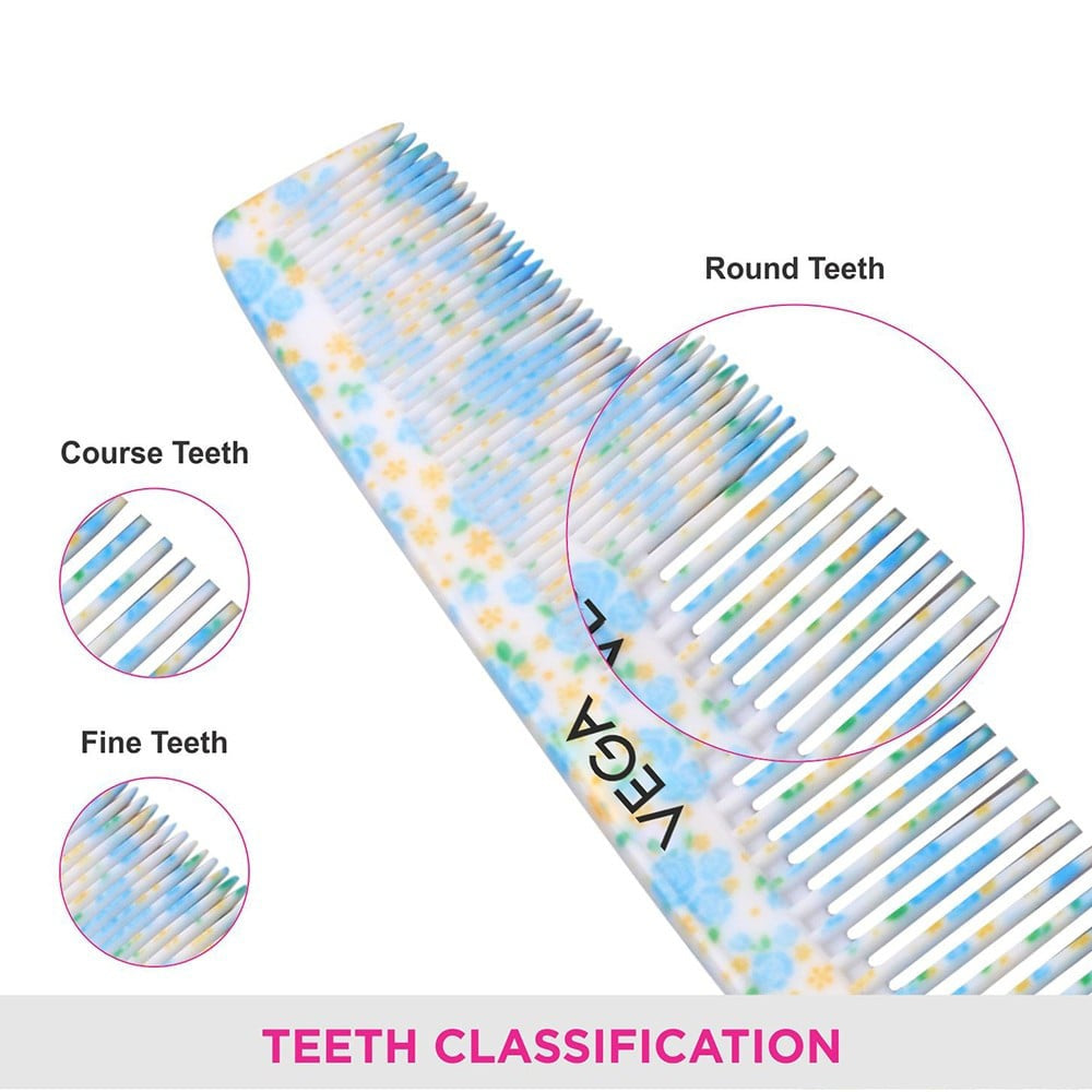 Vega Tulip Grooming Hair Comb (Blue, White) : 1 piece