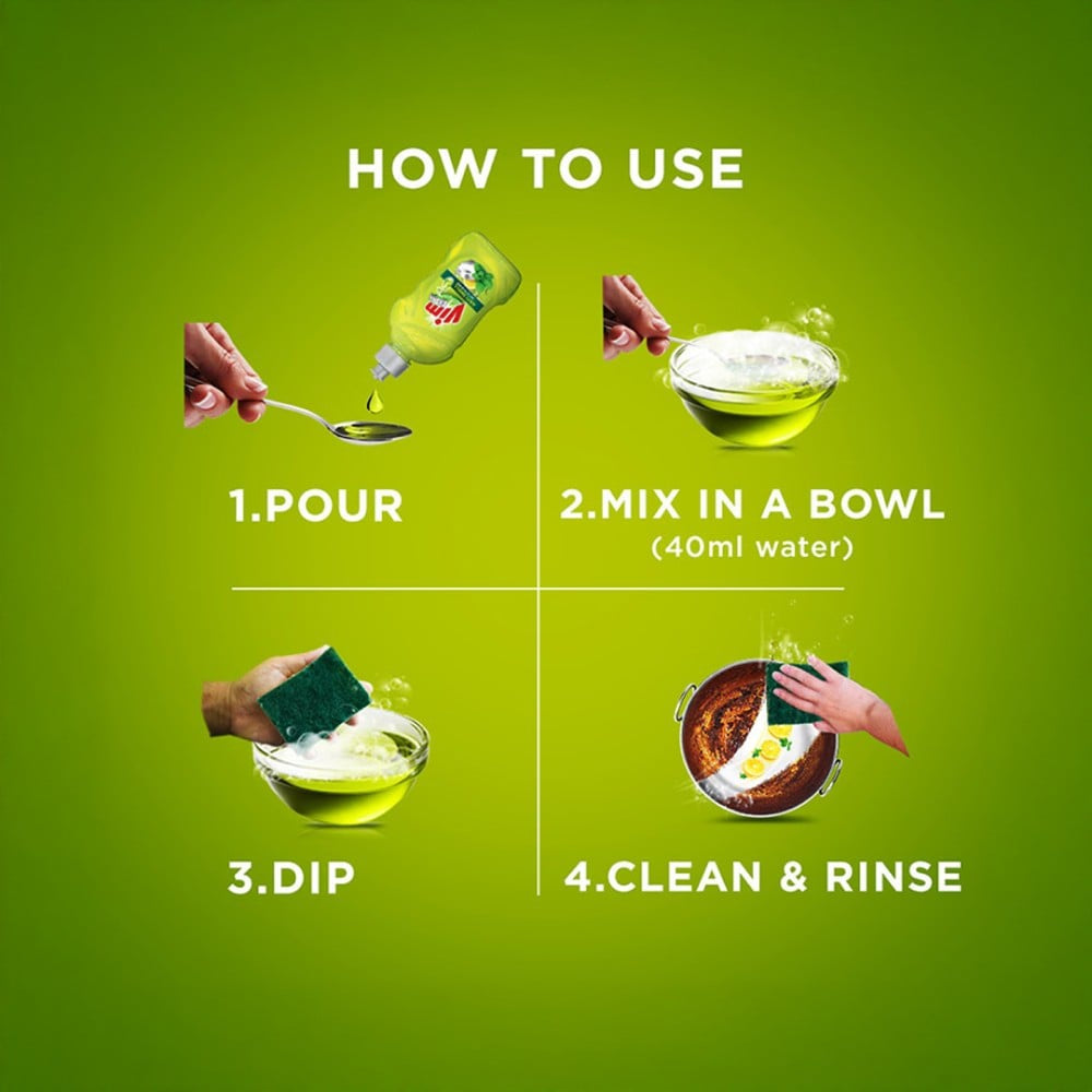 1. Squeeze a small amount of Vim Anti Smell Liquid Dishwash Gel onto a sponge or directly onto the dish.