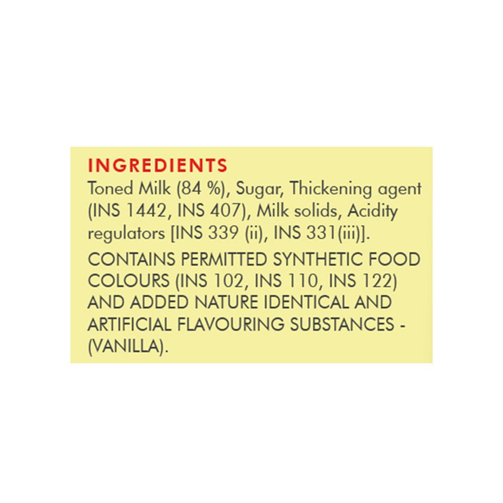 - Key Ingredients: Milk, Sugar, Cornstarch, Vanilla Extract, and Stabilizers