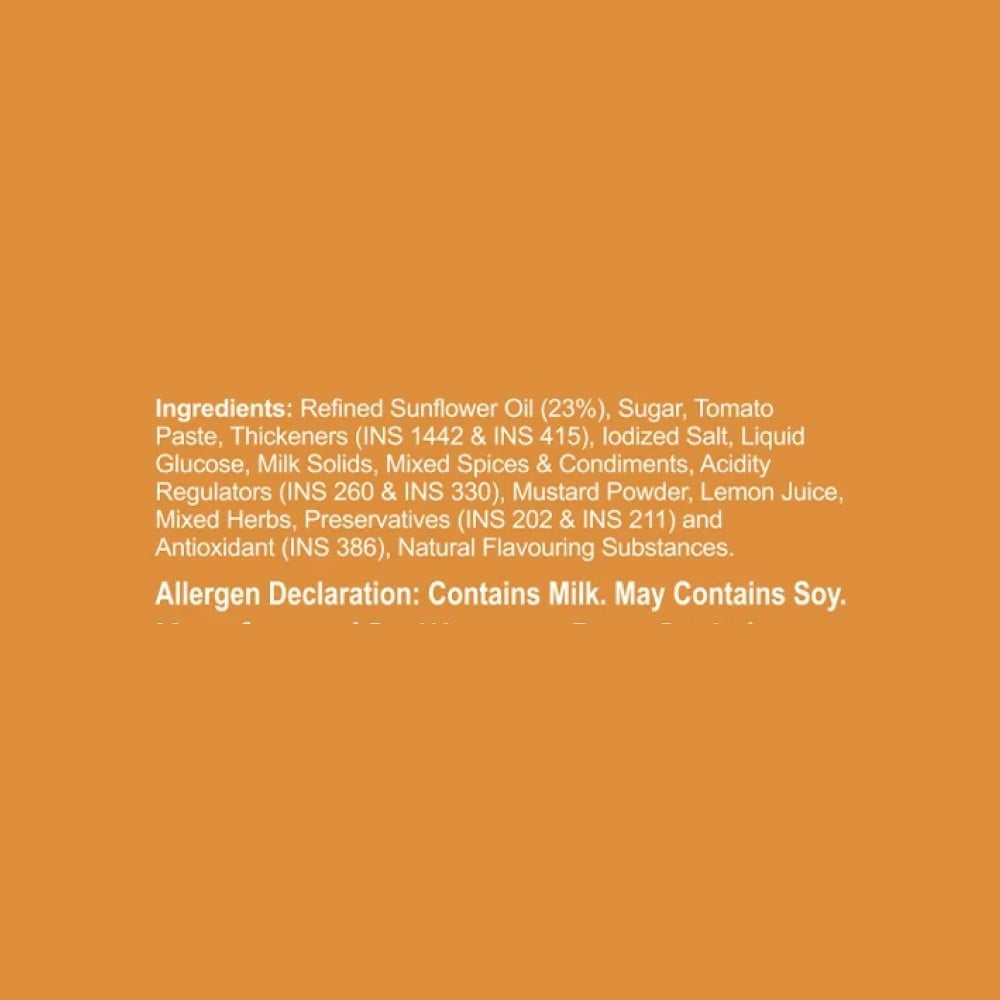 - Key Ingredients: Refined Vegetable Oil, Water, Egg Yolk, Vinegar, Sugar, Salt, and Spices