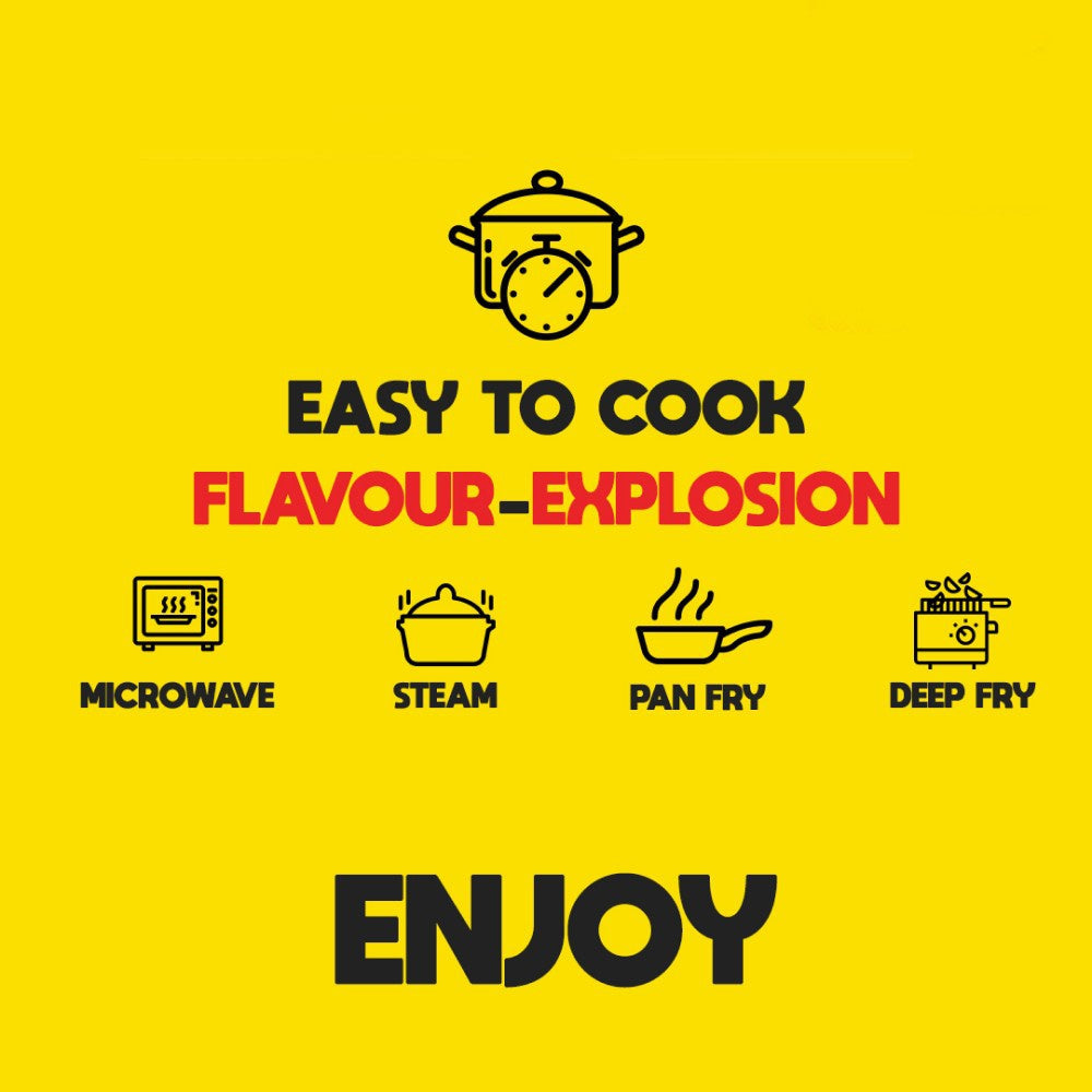 To prepare, simply remove the momos from the packaging. You can either steam them for 10-12 minutes or fry them in hot oil until golden brown. Serve hot with your favorite dipping sauce and enjoy!