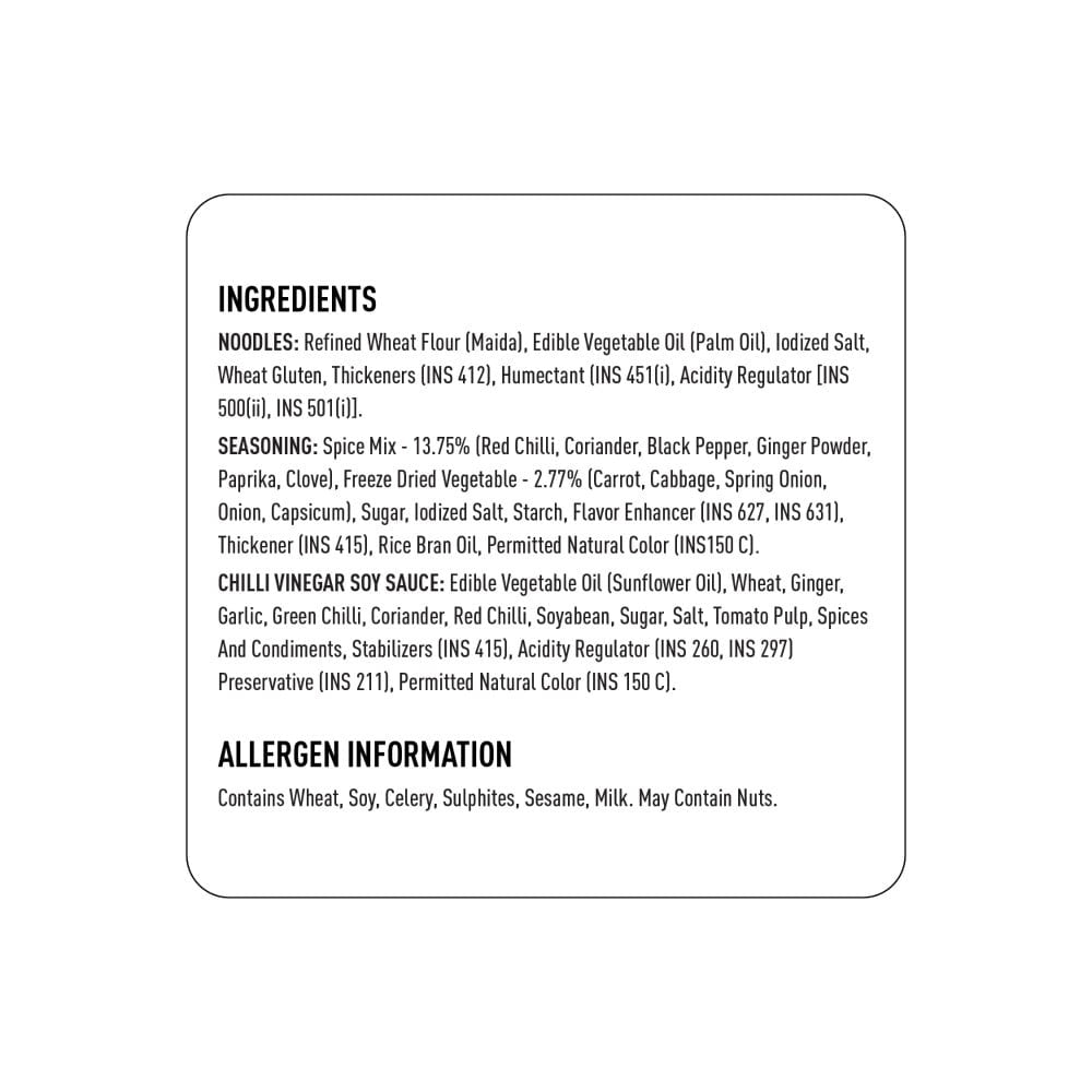 - Key Ingredients: Noodles, Manchurian sauce, dehydrated vegetables, spices