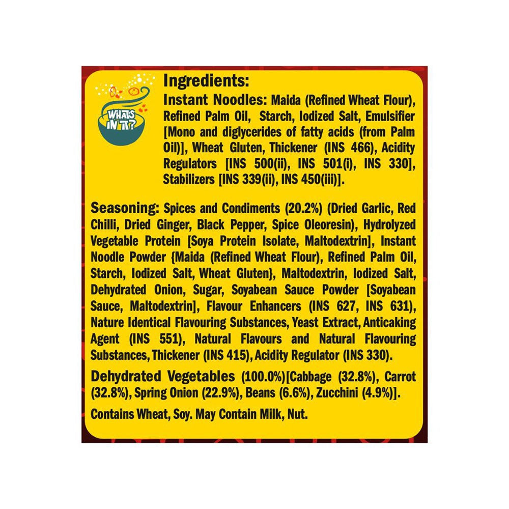 - Key Ingredients: Noodles, Spices, Vegetables, Seasoning