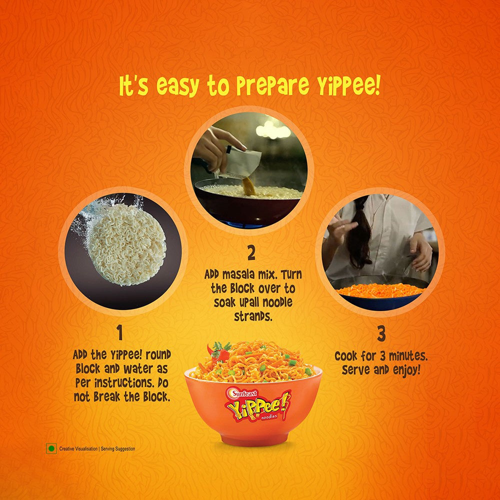 Yippee Magic Masala Instant Instant Noodles with Added Veggies (360 g) - Pack of 2 : 2 x 360 g