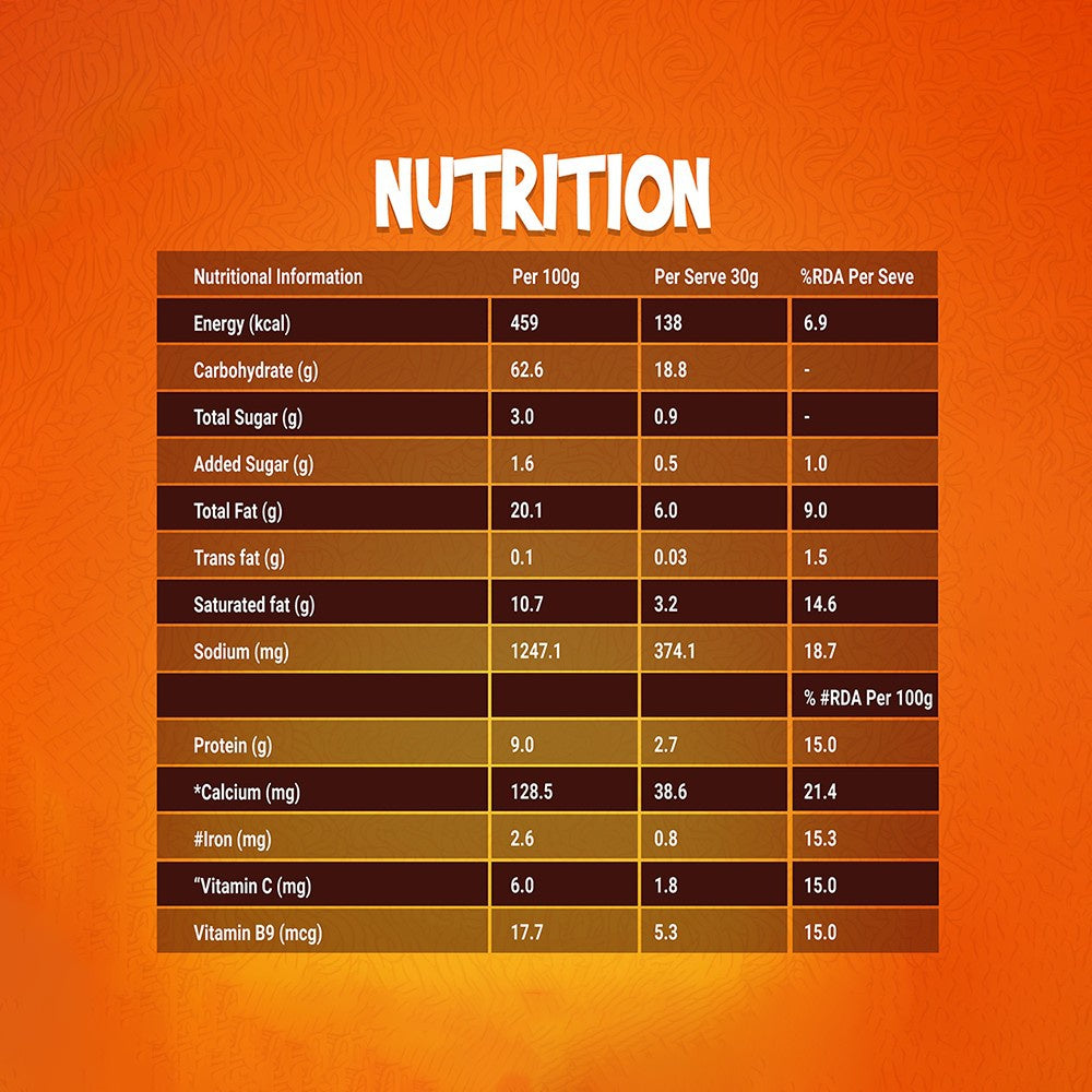 - Key Ingredients: Wheat flour, vegetable oil, magic masala spices, dehydrated vegetables, and salt.