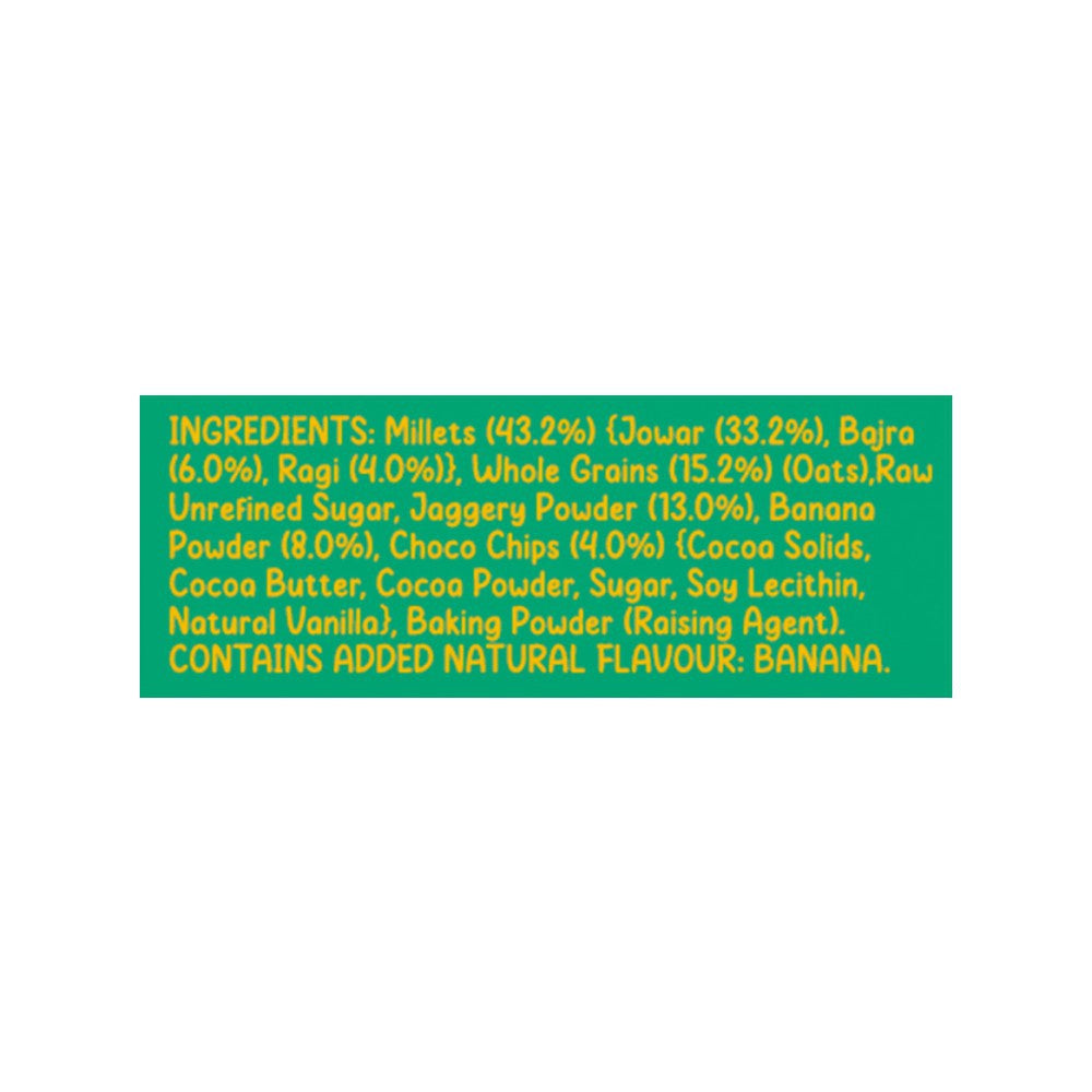 - Key Ingredients: Whole wheat flour, banana powder, chocolate chips, and natural sweeteners.